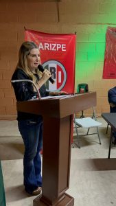 La gira de trabajo continuó en Arizpe, donde rindió protesta como Presidente del comité municipal Ricardo Molina y como Secretaria General Rosa Amalia Navarro. En esta localidad, la Presidenta del tricolor enfatizó que en el PRI no se va a permitir que se pase por encima de la voluntad de la gente. “La crisis por el gusano barrenador ha provocado pérdidas millonarias ante el cierre de la frontera y ante la indiferencia de Morena”, manifestó.